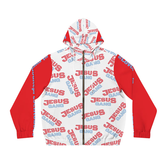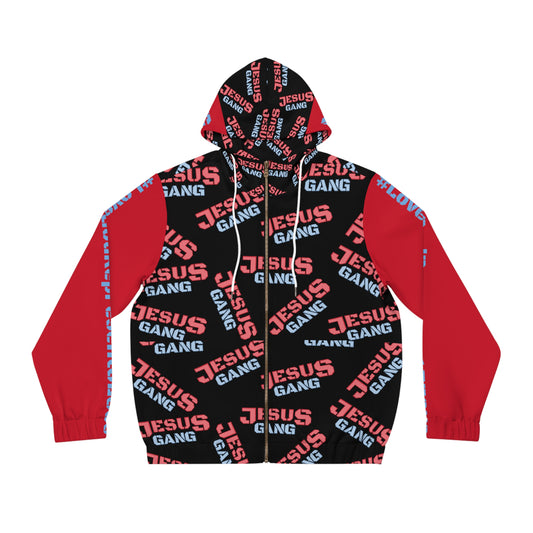 Love God Represent JESUS {Jesus Gang (EVERYWHERE)} *V1* RED Men's Full-Zip Hoodie. By The M.o.G