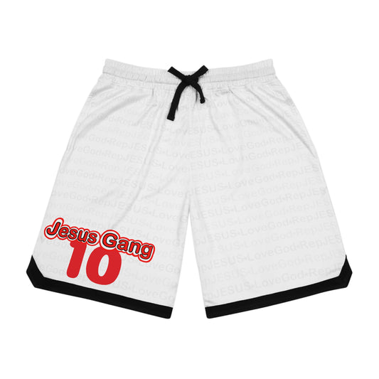 Jesus Gang 10 Ballas (Wht) Basketball Rib Shorts
