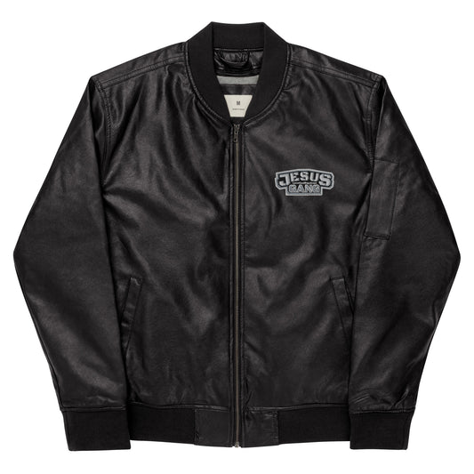 Jesus Gang A.oG Blk Leather Bomber Jacket