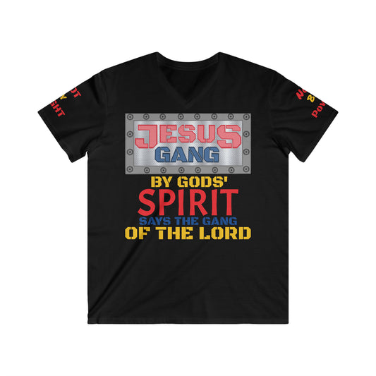 Not by Might nor by Power but by HIS spirit says the Gang of the Lord! ((Darc Blue Steel) fitted v-neck)