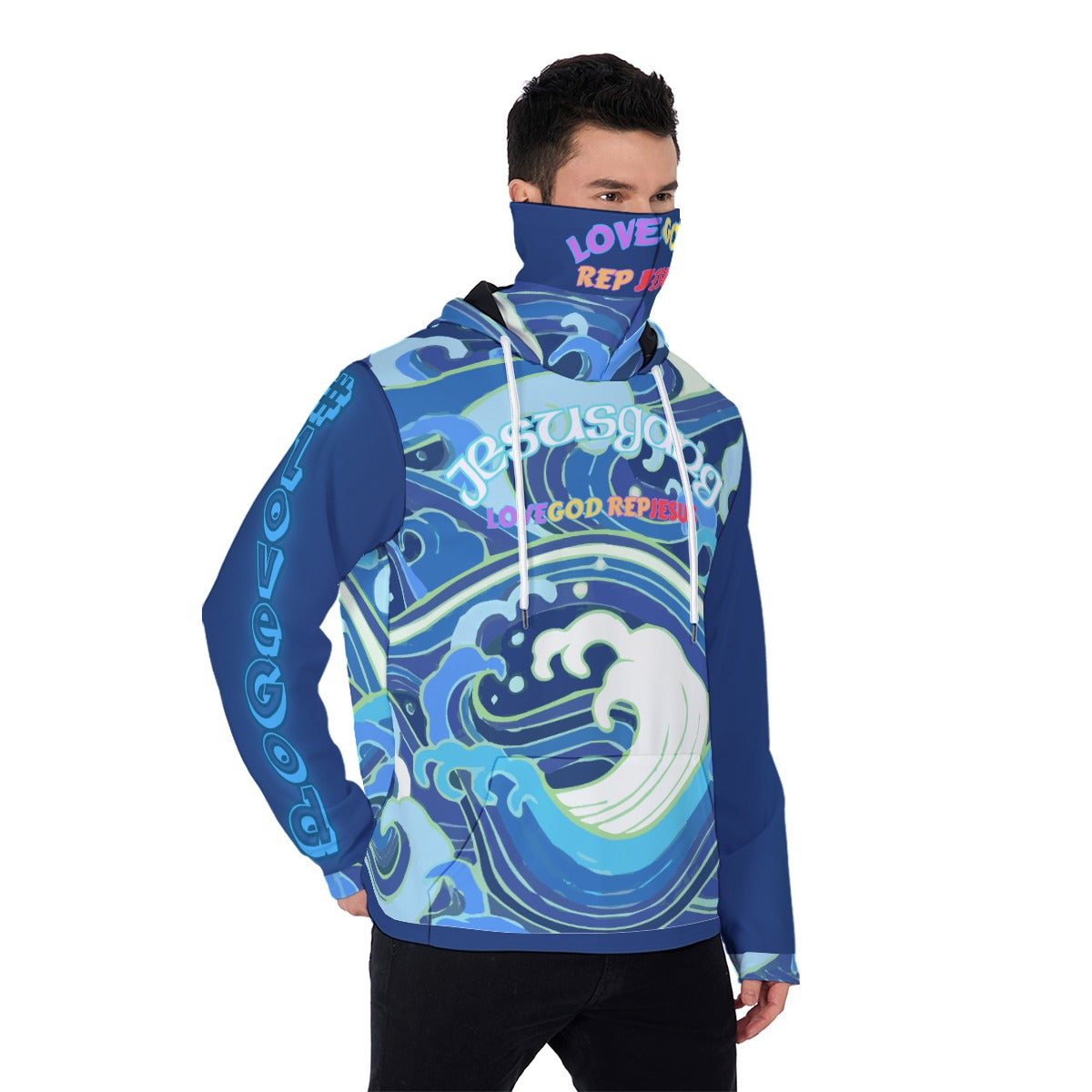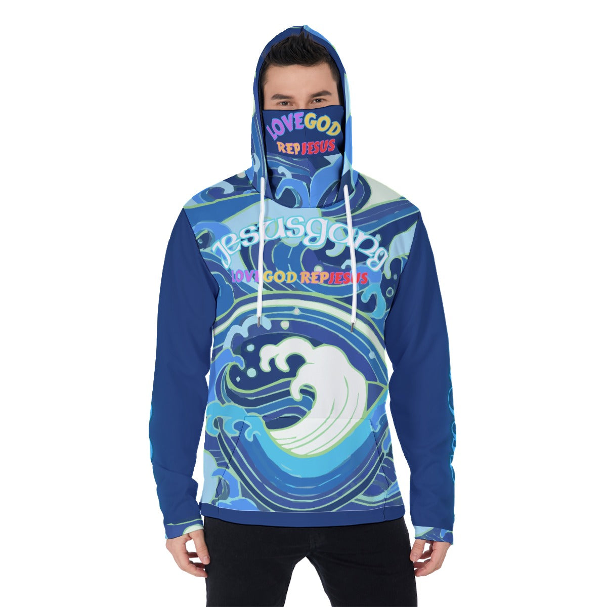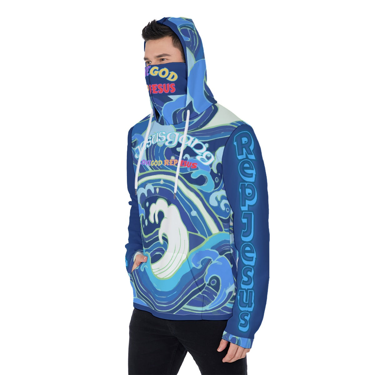 Jesus Gang Blu wave LoveGod RepJesus Masked Hoodie