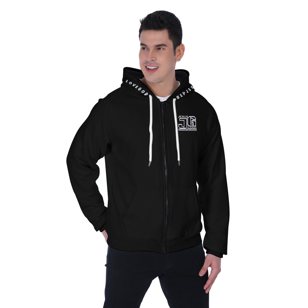 LOVEGOD REPJESUS (Jesus Gang Blk Ops) Men's Heavy Fleece Zip Up Hoodie