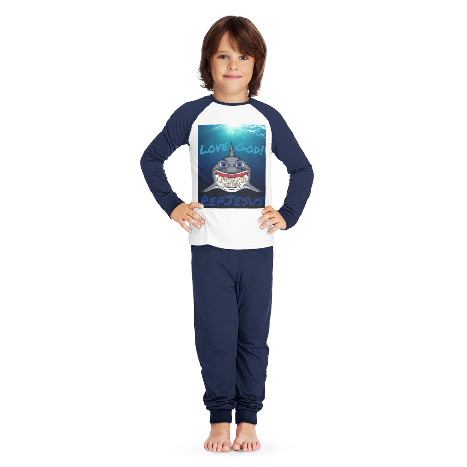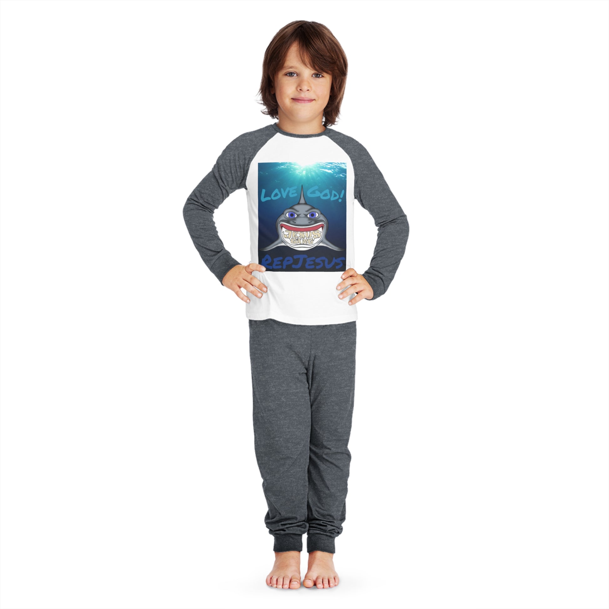 Love God Represent Jesus*Shark*Gang Kids' Pajama Set